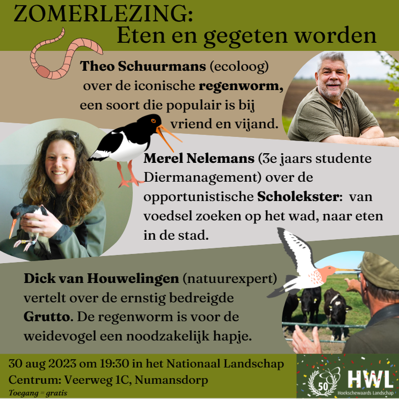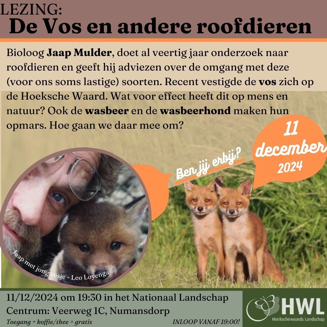 HWL organiseert maandelijks haar NATURE TALKS: boeiende lezingen en symposia waarin natuur, landschap en biodiversiteit centraal staan. Deze avonden vinden plaats op elke tweede woensdag van de maand, met uitzondering van januari en augustus, en zijn toegankelijk voor zowel leden als niet-leden, jong en oud. Tijdens de NATURE TALKS delen deskundige en gepassioneerde sprekers hun kennis en inzichten. Ze nemen je mee in actuele thema’s, verrassende ontdekkingen en verhalen uit het veld. Met deze vorm van educatie wil HWL niet alleen informeren, maar vooral verwondering en betrokkenheid stimuleren. Want wie de natuur begrijpt, ontwikkelt respect en wie respect heeft, draagt bij aan behoud en bescherming van ons landschap. De NATURE TALKS zijn laagdrempelig en voorlopig gratis bij te wonen. Een vrijwillige donatie ter plaatse is welkom en helpt ons om deze inspirerende avonden te blijven organiseren. Een overzicht van alle aankomende lezingen en bijeenkomsten vind je in onze Agenda. We verwelkomen je graag bij een van onze NATURE TALKS!